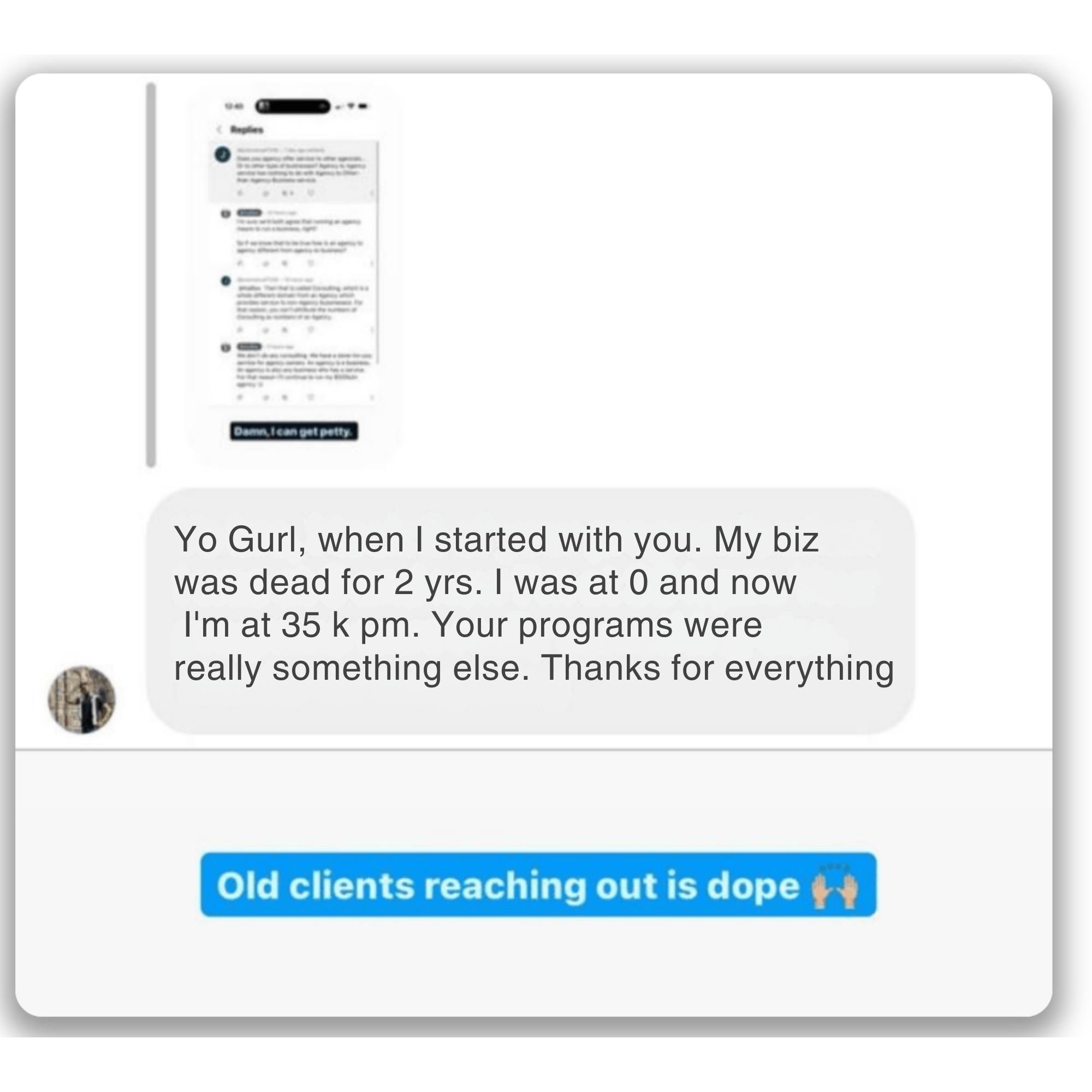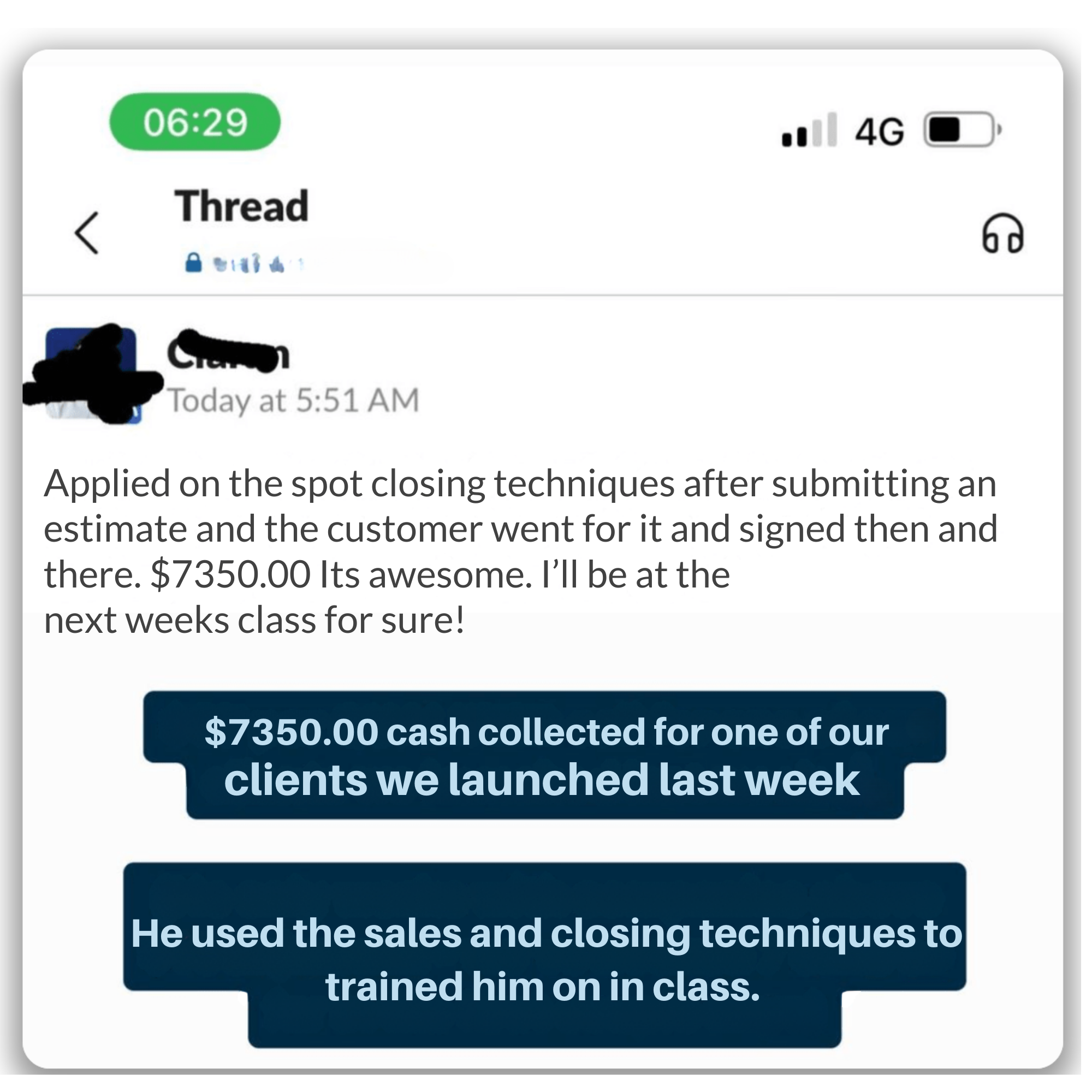 There’s a guarantee: follow the steps, and if the business isn’t launched with clients in 120 days, the program fee is refunded plus $3,000 cash.